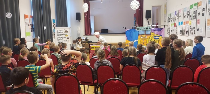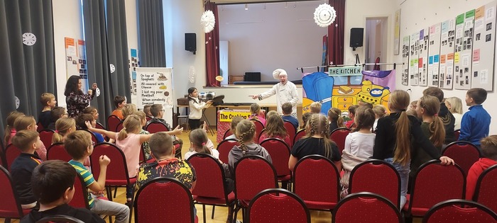 Tentokrát přijel představit The Cooking show pro žáky 3.tříd, při které se seznámili se slovní zásobou na téma jídlo.