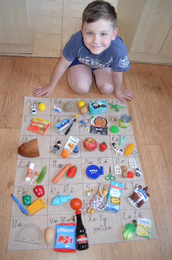 Jejich úkolem bylo napsat si na velký papír do připravených políček písmena abecedy a pak už jen hledat na zahradě či ve svém okolí různé živé i neživé přírodniny.