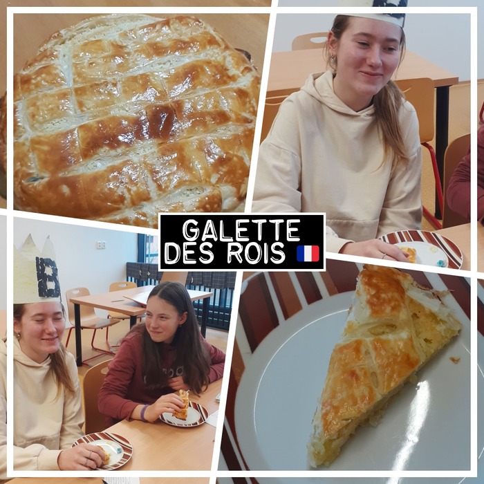 K jedné z nich patří Galette des Rois, tedy tříkrálový koláč z listového těsta, mandlovou náplní a s ukrytou figurkou uvnitř. Kdo ve svém kousku koláče figurku objeví, stává se králem. I my našli svoji královnu a pochutnali si na výborném koláči, který nám upekla paní učitelka.