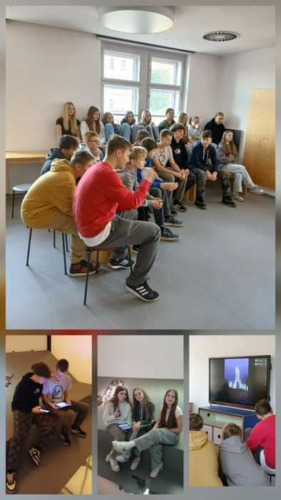 V galerii Kunsthalle se zúčastnili interaktivního workshopu „Rozcvička s AI obrazem“, kde zkoumali kreativní možnosti umělé inteligence při generování videí. Druhá část programu patřila Českému muzeu hudby, které žáky provedlo historií hudebních nástrojů v unikátních prostorách bývalého barokního kostela.