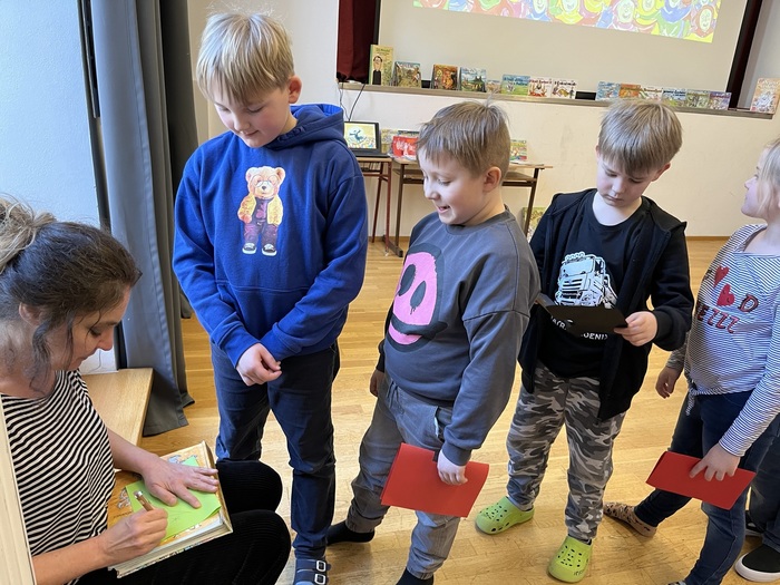 Na začátek dala autorka dětem návod, jak se stát spisovatelem a ilustrátorem. Vyprávěla a představila své knihy a naučila žáky, jak vyrobit prostorový obrázek a jak nakreslit historické „osobnosti“ – Jana Žižku.
