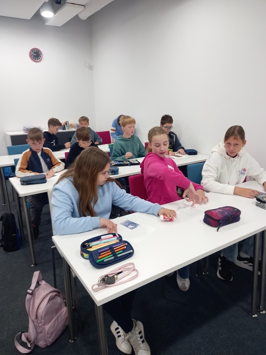 Dne 6. 5. 2025 vyjela naše třída 5. B do knihovny v Havlíčkově Brodě na exkurzi s názvem Poznej svůj vnitřní svět. Paní knihovnice nám ukazovala obrazy různých světově známých malířů. Potom jsme dostali papír a vybrali si kartičku s obrázkem, který jsme měli nějak domalovat - pozadí, pokračování obrázku apod. Nakonec jsme se pustili do podobného díla, které vytvořil americký abstraktní malíř Jackson Pollock.