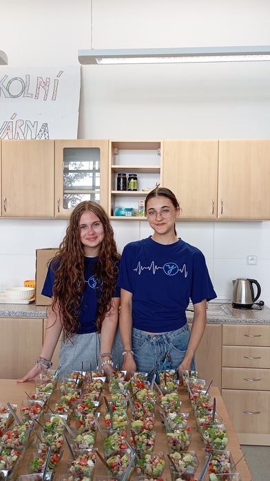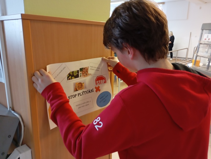 Co s tím? Sedmáci připravili kampaň, se kterou obešli všech 27 tříd naší školy. Vysvětlovali svým spolužákům, proč je důležité jídlem neplýtvat, navrhovali, jak se v jídelně stravovat beze zbytků: pečlivě si vybrat jedno ze dvou jídel, které jim chutná, udělat si na jídlo čas, nespěchat, říci si, kolik a čeho opravdu sní a nenechat si nabírat to, co za chvíli vrátí do nádoby na odpadky, raději si dát méně a případně si přidat. V hodinách matematiky a přírodopisu spočítali, kolik životů zvířat se zmaří takovým plýtváním, kolik hektarů pole se obdělává zbytečně. V hodinách českého jazyka a informatiky vytvořili plakáty a karty se slogany, kterými vyzdobili školní jídelnu a chodby školy. Kampaň probíhala do konce března 2025 a po ní následovalo druhé vážení zbytků. Aby bylo možné provést srovnání, byl jídelníček stejný jako v prosinci roku 2024. Dva dny před zahájením druhého vážení připomněli pravidla stravování ještě hlášením ve školním rozhlase, a pak už netrpělivě čekali na výsledky.