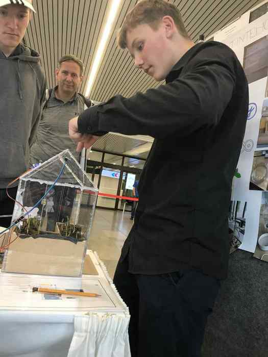 Tým PlantInteligence, se více než půl roku věnoval vývoji modelu inteligentního skleníku. Z překližky a plexiskla postavil model, který následně osadil elektronikou a senzory. Skleník pomocí čidel sleduje teplotu vzduchu a vlhkost půdy, na jejichž základě automaticky otevírá střešní okno či spouští zavlažování přes perforovanou hadici. Celý systém je řízen mikrokontrolérem Arduino, a cílem bylo minimalizovat potřebu lidského zásahu a zároveň zajistit optimální podmínky pro rostliny.