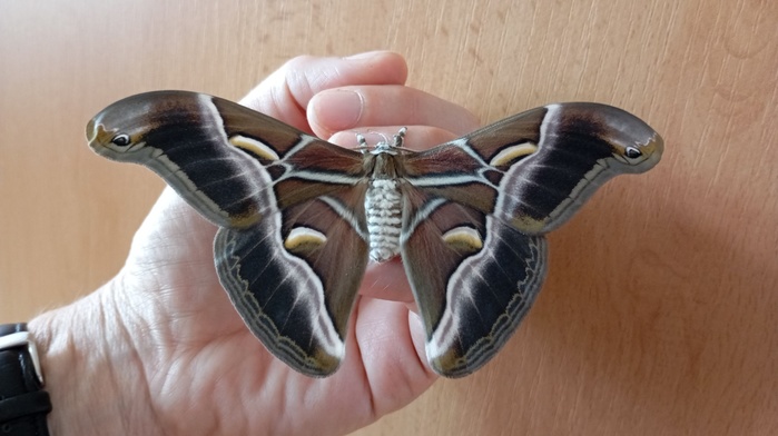 Den před vysvědčením jsme už mohli v teráriu pozorovat sedm dospělců s rozpětím křídel asi 12 cm, s nádhernou kresbou a sametovým tělem. Samičky se téměř nepohybují, samečkové létají a oplodňují samičky, ty pak kladou vajíčka na listy rostlin. Dospělci nemají vyvinuté trávicí ani vylučovací ústrojí, nepřijímají tedy potravu a mohou létat kdekoli, třeba ve vestibulu naší školy. Tam bude možné si je v den vysvědčení prohlédnout a kochat se dokonalostí přírody. První vajíčka už jsou nakladena, tak budeme mít co pozorovat i v příštím školním roce. Přidejte se k nám!