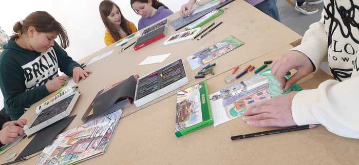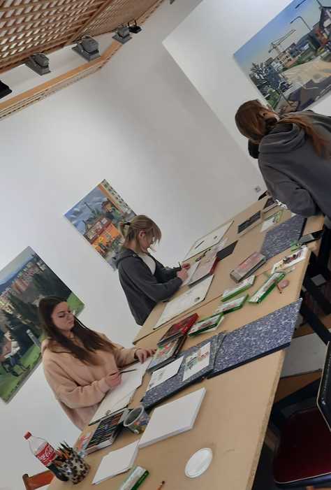 V pondělí 7. 4. a ve středu 9. 4. výtvarné kroužky přijaly pozvání pana Janáčka tvořit v přibyslavské galerii. Děti si prohlédly výstavu Jakuba Dvořáka a Michaely Novákové „Ve dvou se to lépe maluje“. Na svých obrazech dvojice zobrazuje krajinu v okolí Žďáru nad Sázavou, ale velmi originálním přístupem – malují vždy najednou jeden obraz přímo v plenéru. Naši mladí výtvarníci si vyzkoušeli tento postup a užili si při společném tvoření spoustu legrace.
