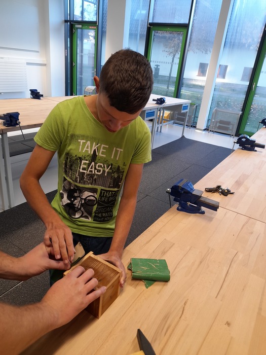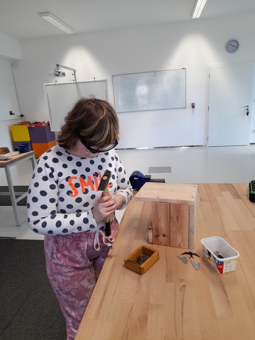 V hodinách pracovních činností jsme navštívili dílny, ve kterých jsme se společně učili převod jednotek délky, měření, řezání, vrtání, zatloukání hřebíků a práci s brusným papírem. Kamarádům se velice dařilo a jako odměnu si každý odnesl svou vyrobenou ptačí budku :-)