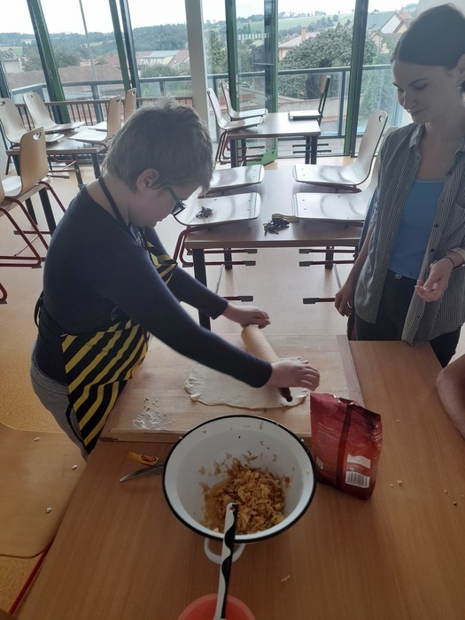 Při příležitosti rodičovských schůzek se ve škole otevřela školní kavárna. Žáci naší třídy Kamarádi se aktivně do akce zapojili a napekli do školní kavárny moučníky v podobě jablečného štrůdlu, povidlových šátečků a skořicových šneků.